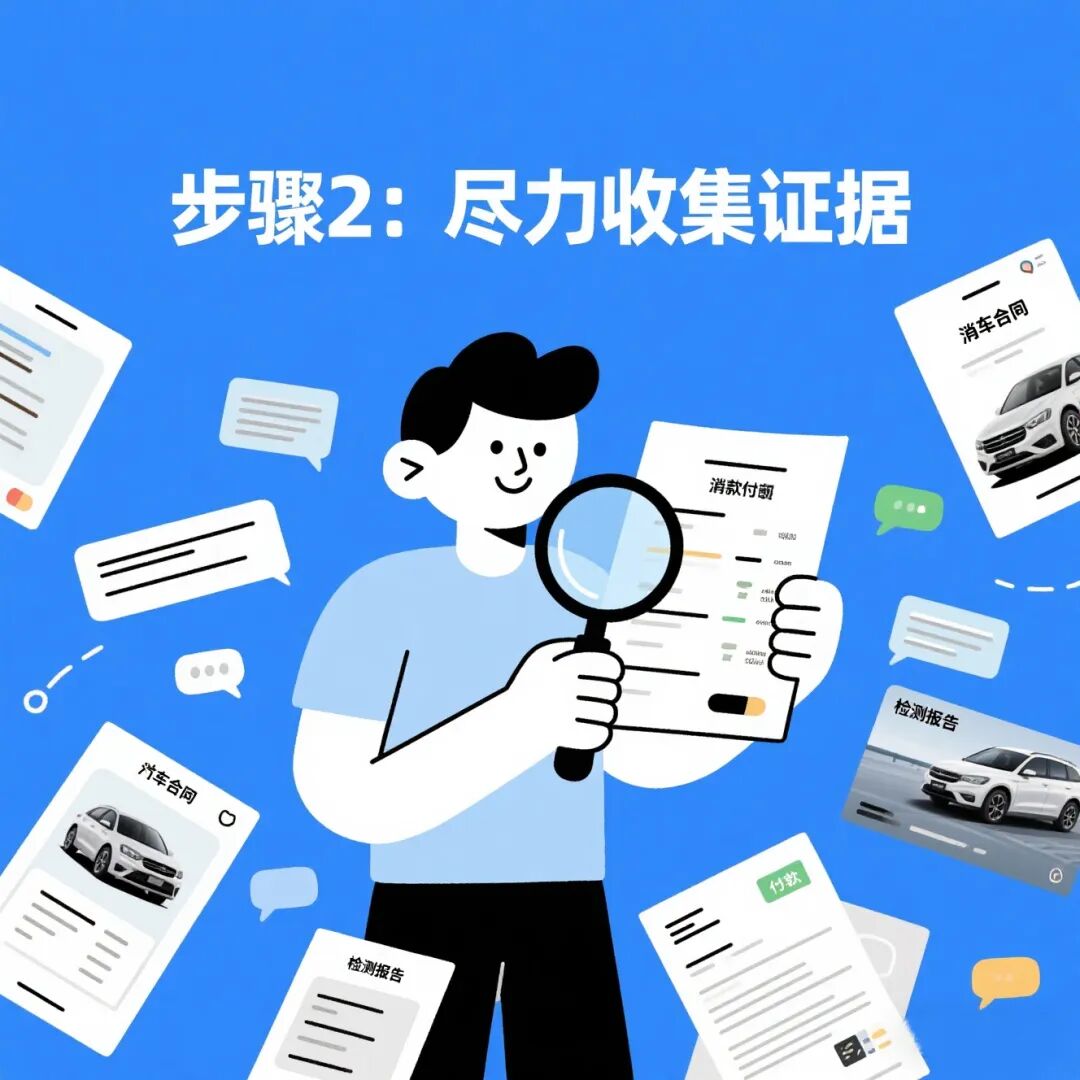 购车合同、交付单、付款记录、车辆广告截图、聊天记录、第三方检测报告等。